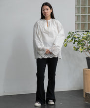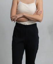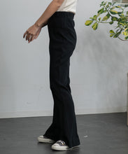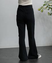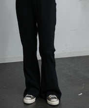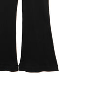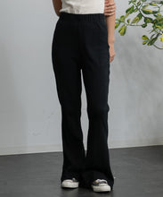 伸縮性が良く肌触りの良いmiller定番のパネルリブ素材でフレアパンツ。ウエストにもゴム入りでゆったり楽ちんで着回し力のあるパンツです。家でも外でも着用できるのが◎。