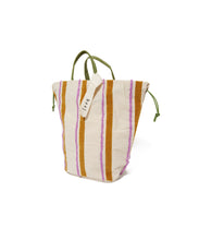 鮮やかなカラー使いとあたたかみがかわいいバッグ。立体感のある刺繍とフロッキー加工の素材感、絶妙なカラー使いなど細部までこだわったデザインです。脇の紐を絞って巾着型にしても、紐を絞らずにトートバッグにしても使える2WAYタイプです。A4の書類が入る大きさで、デイリー使いにピッタリ。内側には小物の収納に便利なポケット付き。コーデのアクセントにもなるアイテムです。