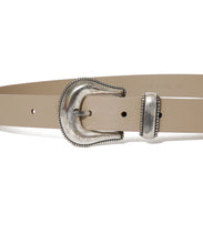 キレイめな雰囲気がありながらも、カジュアル感も楽しめるウエスタンベルト。バックルの金具部分は、擦ったようなヴィンテージ加工を施しています。シーズンレスで活躍してくれるアイテムです。