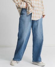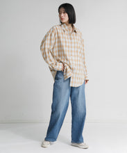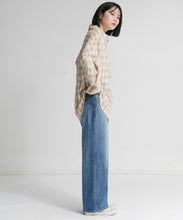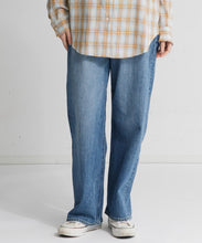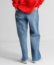 太ももから裾にかけてストンと太いシルエットのストレート。メンズの太めジーンズを女性が穿きこなすようなイメージです。メンズライクな印象にするため、あえて股ぐりを長めに設定し、ヨークの幅や後ポケットを大きくしています。実際にメンズサイズを穿こうとするとウエストが合わなかったり、重さで下がってしまったりと、女性らしい上品見えが難しいですが、JOANはウエストがキュッと入ったジャストサイズのため、メンズライクなジーンズでも女性らしく上品に穿いていただけます。ボリュームのあるパンツですが、ウエストがキュッと入っていることにより、パンツのボリュームとウエストのギャップで華奢見え効果も生まれます。また、ボリュームが横に広がらず、ヒップの高さから下に落ちるので、後ろ姿の野暮ったさもありません。ゆったり太めのストレートなので、体型カバーも叶えてくれるシルエットです。