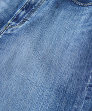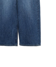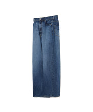 全体的にあたりのついた通年使えるブルー色。色の濃い所とハイライトのメリハリがあり、全体的にあたりがついた1本です。ヒゲが気になる腰回りの間延び感を軽減、ヒゲの上から伸びるハイライトがモモのハリをカバーします。またハイライトが上の方から入っていることにより、目線が上がるので脚長効果が期待できます。しっかりとした加工感ですが、色味がクリーンなのでカジュアル過ぎず、こなれ感のあるブルー色です。