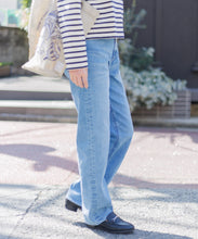 深めの股上と、ゆるさの中に美脚シルエットを叶えるストレートラインが魅力の「LEA」。軽量&速乾性に優れた“リアリーライトデニム”を採用し、夏でも快適なはき心地。ライトブルーの爽やかなカラーと、こなれた色落ち感でカジュアルにもキレイめにも馴染む一本。環境に配慮したナノミスト加工もポイントです。