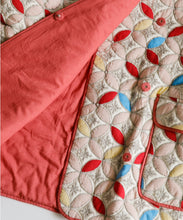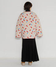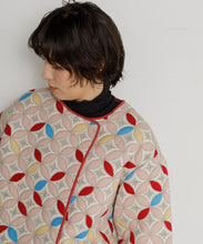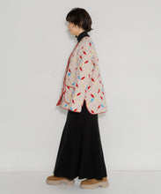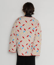 全面に施されたキルティングが目を引き、コーディネートのアクセントになる一着です。薄い中綿入りで軽く羽織れるため、季節の変わり目にもぴったり。オーバーサイズのデザインなので、中にニットを合わせても快適に着こなせ、長いシーズン活躍する便利なアイテムです。