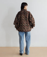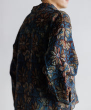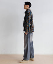 深みのある自然な色合いが特徴のキルト素材を使用したCPOジャケット。藍やターメリックなどの植物由来の染料を使った「ベジタブルプリント」という技法は、天然染料による深みのある発色と、手作業ならではの繊細な仕上がりが特徴です。生地には、「Kantha(カンタ)」と呼ばれる、使い古された古布を何枚も重ね、刺し子を施した布が使用されています。オールハンドメイドによるあたたかみと存在感たっぷりの素材を、Gジャンデザインに落とし込みユニセックスサイズに仕上げた、特別な一枚です。