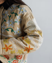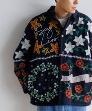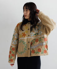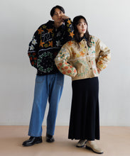 フラワーモチーフの刺繍とパッチワークを贅沢にあしらったジャケット。ユニセックスで着用いただけます。どこかノスタルジックなムードと、LEINらしいポップで遊び心あふれるデザインは唯一無二の存在感。インドの伝統的な機織り機で丁寧に織られたコットンマティ素材は、インドならではの素朴でナチュラルな風合いが感じられ、少し粗野なテクスチャーが魅力。ジャケットの裏地には温かみのあるボアをプラスし寒い季節にも嬉しい仕様です。異なる刺繍技法を組み合わせ、それぞれのパーツをミシンで縫い合わせた後、ハンドマシーンでアリ刺繍という伝統的な刺繍を施しています。秋冬コーデの主役になる特別な1着です。
