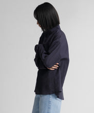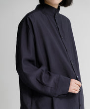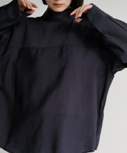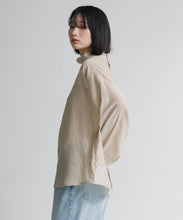 前後2WAYで着用できるハイネックシャツ。レーヨン混のサラリとした素材で、冬はセーターやカーディガンのインナーとして、春・秋は一枚で着用いただけます。ハイネックの襟元がコーデのアクセントに。ボタンを開けて羽織りとして使っても◎。ほどよい身幅と丈感で、ロングスカートでもパンツでも合わせやすいシルエット。キレイめでもカジュアルでも使える、活用度が高いアイテムです。