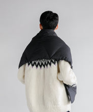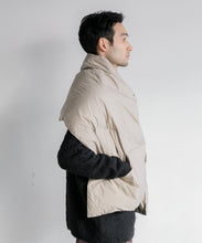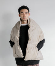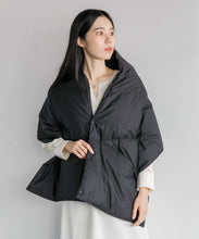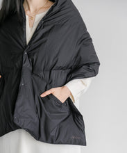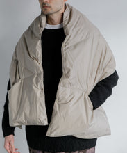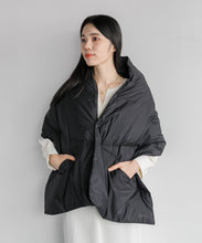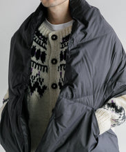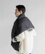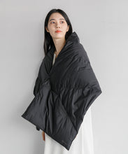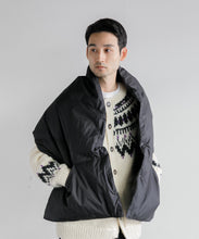 ブランケット代わりにも使える大判シルエットのダウンポンチョマフラー。トップに適度なボリューム感を与えて、コーディネートのアクセントに◎。また、大きなカンガルーポケットは、ハンドウォーマーとしても活躍します。表生地には、やわらかくソフトな質感のナイロン素材を使っています。ナイロン特有の硬さはなく、しなやかで軽快な印象。まるでコットン素材のような肌当たりの良さを感じていただけます。フロントはスナップボタンになっており着脱も容易。温度調整にも優れています。また、大判サイズのため、車内や建物内ではブランケットとしても活用でき便利です。ユニセックスでお使いいただけます。