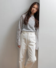 ORCIVAL定番のコットンロード#B211をベースに、シアー素材に変更したカットソー。透け感と素材の柔らかさがポイントで、着こなしに軽快さをプラスします。着用した際に、袖口にワンクッション溜まるように、袖丈を長めに設定しています。独特のシャリ感を持った糸を使用し、薄地ながらもほどよいハリのある天竺素材を使用。ドライなタッチと、ほどよい透け感が特徴です。