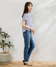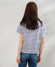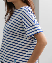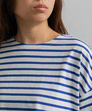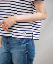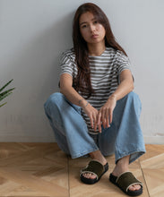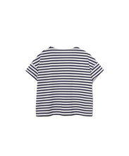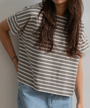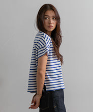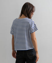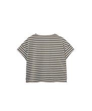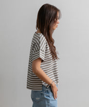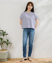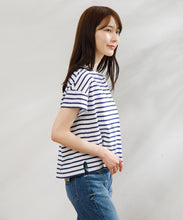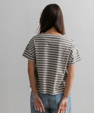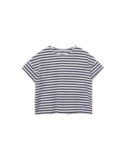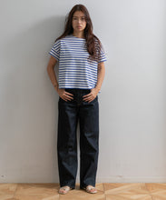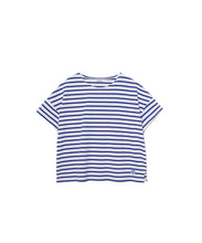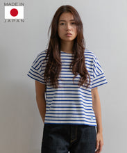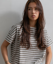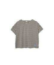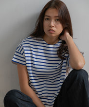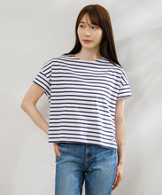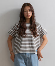 ゆったりとしたボックスシルエットの身頃に、コンパクトな袖が特徴的なカットソー。袖は肘上の長さで、腕を細く長く見せてくれる丈にこだわって作りました。適度な柔らかさを持つ天竺編みの素材を使用しています。