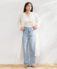 すっきりとしたシルエットで脚を長く見せてくれるハイライズワイドストレートデニム「THE NIECE」。バックの、あえて位置をずらしたようなポケットのデザインが特徴的です。ほどよいわたり幅でどんなトップスにも合わせやすく、upper hights独自のパターンにより、内股のラインもまっすぐ見え、美脚効果をさらに高めてくれます。