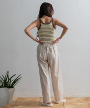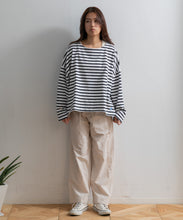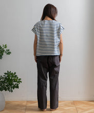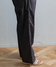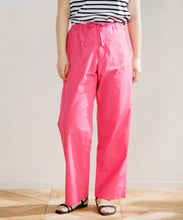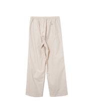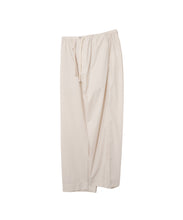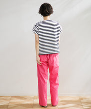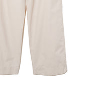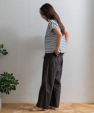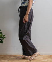 きれいなカラーが揃った、軽く涼しく着用できるイージーパンツ。軽い素材を使いながらも、太いステッチと、パッカリングで全体の表情を出しています。ミリタリーマリンパンツのデザインを踏襲し、ほどよくリラックスしたシルエットで着用しやすいシルエットです。軽いパンツに最適な、しわになりにくくしっかりした素材で、仕上げの際にシリコン樹脂を打つことによって、独特な反発感を表現したオーガニック原料のタイプライター素材を使用しています。