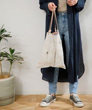 manipuri定番のトートバッグ。異なる2柄を組み合わせたデザインが大人の遊び心を誘います。裏返すとシンプルカラーのバッグに変身するリバーシブル仕様。一つで二役になる優れものです。持ち手がサイドに付いており、持った時のフォルムが三角形になるデザインです。サイズは、A4サイズが入る大きさで見る角度により様々な表情が楽しめる人気のトートバッグです。通勤や通学などの普段使いからちょっとしたお出かけまで幅広い場面でご使用いただけます