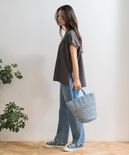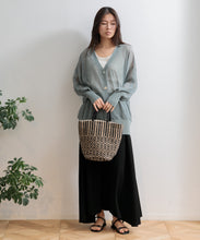 綿と麻を混ぜ込んで織ったオリジナルの素材で、普段使いしやすいサイズ感のバッグです。素材は手織り生産されており、 織りむら、ネップなどの風合いが特徴です。 1つ1つの柄が微妙に異なるハンドメイドの良さをお楽しみください。