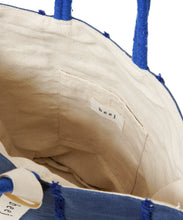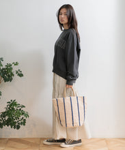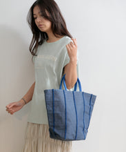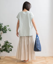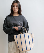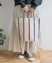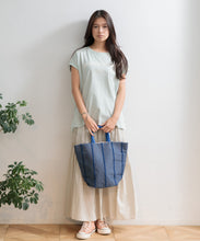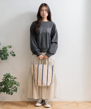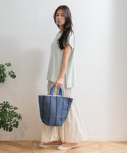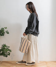 張りのある麻生地に立体感のあるループ刺繍を施したバッグ。素材はカジュアルですが、サイズや形を大人っぽく仕上げたデザインです。