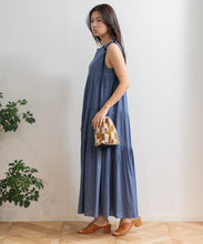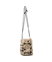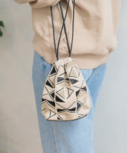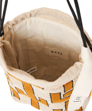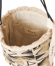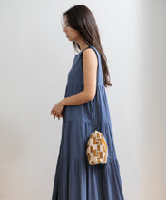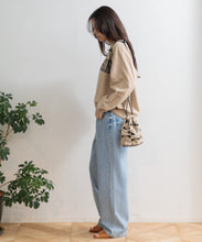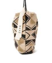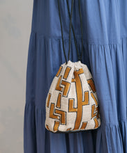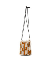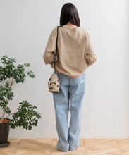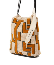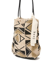 しゃり感のある綿麻生地に、2種類のオリジナル刺繍を施したバッグ。使いやすい巾着の形は、肩に掛けられるので便利です。