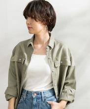 体を包み込まれるようなサイズ感がデザインポイントになっているスーパービッグ・シャツ。1枚でも着用OK、また軽いアウターとしても着回しのきく便利アイテム。スタイリングはチュニックのような感覚で裾をアウトにしてボトムを合わせるもよし、前裾をボトムにタックインして着用するもよし、フロントを全開して羽織として着用してもよし、様々な着こなしが可能です。