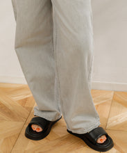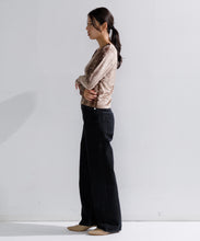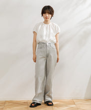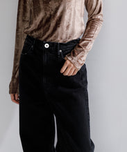 upper hightsの新型ハイライズストレート「THE NIECE(ザ ニース)」。ウエスト周りはすっきりとさせたハイライズ、膝や裾は大きく取ったワイドストレートデニム。腰位置が高く見え、脚長効果抜群の1本。古着を彷彿するような加工を表現できる綿100%のblack denim素材を採用。あえて腰履きをし、裾にクッションを持たせルーズに履く履き方もお勧めです。