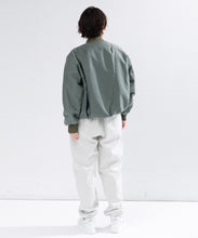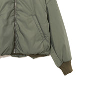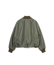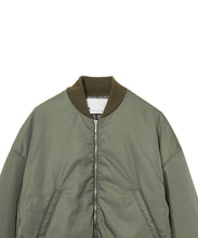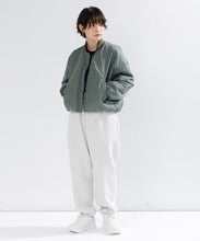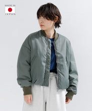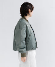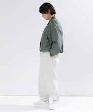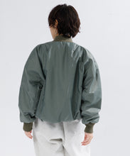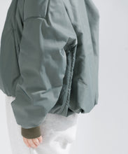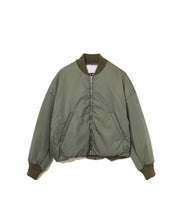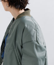 ミリタリーの定番であるMA-1をエレガントでモードに表現しました。素材は、環境に配慮したリサイクルナイロンを使用し高密に織ることで、奥行きのあるマットな光の美しさと絶妙なハリ感としなやかさのバランスが良く、色気のある表情が特徴です。形は本来のMA-1をベースに、着丈をショート丈、裾のリブを隠しギャザーやタックを入れることで立体的な曲線の美しさをモードに表現。ファスナーやリブも少し艶があるものを使用することで、上品に見えるよう全体の光のバランスを整えました。歴史あるミリタリーアイテムを現代的表現でラグジュアリーに構築したMA-1の新しいスタイルです。