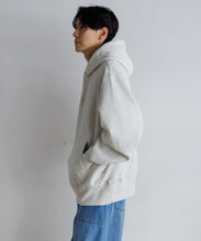 やや厚みのあるスウェット地を使用したフーディー。コットンとポリエステルを採用し、タフさと着心地を両立しています。ゆったりとしたオーバーサイズシルエットで、肩は落ち感のあるドロップショルダーが特徴的。柔らかい素材感で、着心地も良くシンプルなデザインなので、ヘビロテ間違い無しの1枚です。