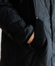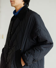 アメリカ40年代のレインコートを彷彿させるディティールを現代のシルエットに再構築したコートです。サーモライトを使用したひょうたんキルト型のライトキルト素材を使用し、軽量ながらしっかりとした暖かさを提供します。ラグラン袖を採用しており、インナーを重ね着してもストレスなく快適に着用可能。シーズンを通して活躍する、機能性とデザイン性を兼ね備えた一着です。