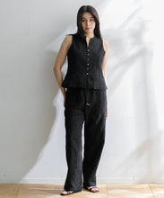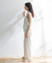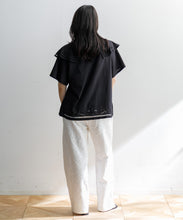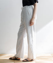 2枚の生地を重ね合わせ、図形を切り抜きながら手作業でステッチを施す【リバースアップリケ】技法を用いたパンツ。ストレートなシルエットが様々なトップスに合わせやすく、ウエストゴムでイージーに履けるので夏に大活躍するアイテムです。両サイドのポケットも便利。同じリバースアップリケのベストとセットアップコーデもおすすめです。