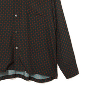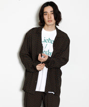 オリジナルのクレスト柄を落とし込んだ総柄プリントのオープンカラーシャツ。肌触りが良く落ち感のある上品なレーヨン生地を、リラックス感のあるボックスシルエットで表現しました。ボタンは黒蝶貝、背ヨーク裏にはキュプラ生地を使用しており高級感も◎。同素材のパンツとセットアップでの着こなしもおすすめです。
