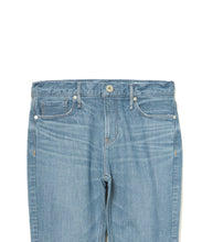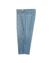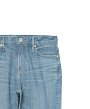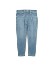 upper hightsの定番のGIRLFRIEND(SKINNY BOYFRIEND )ストレッチデニム「THE STELLA」。太すぎないスッキリとしたスタイリッシュなボーイズシルエットが最大の特徴です。9分丈設定にしているため、お直しいらずでジャストレングスで裾の加工感も楽しめます。タテ糸にショートスラブのムラ糸を使用し、程よくアクセントのあるプレーンな表情のテキスタイルを採用。