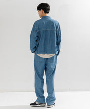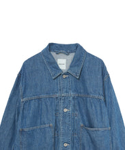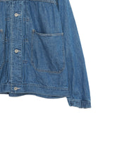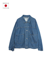 ドロップショルダーでゆったりサイズのショートジャケット。ワークタイプのパッチポケットが特徴で、フロントにはピンタックが入っています。あらゆるパーツにギャザーを入れることで立体的なシルエットに仕上げています。表地は11ozコットンリネンデニム素材。一般的なコットンデニムと違いリネンの光沢感とハリ感が生まれ、後加工する事でしなやかな肌触りで、使うほどに柔らかくなる素材です。